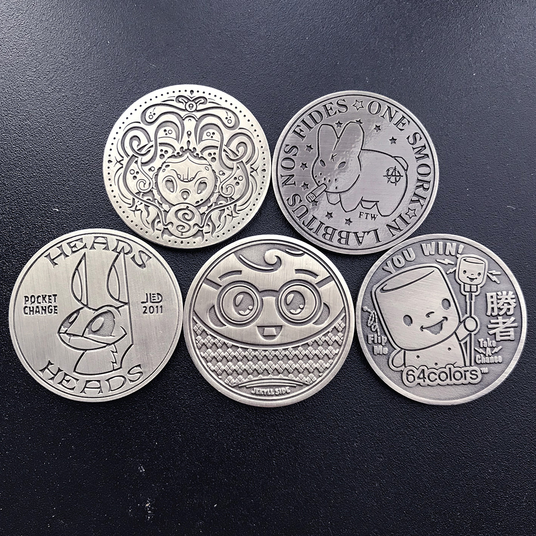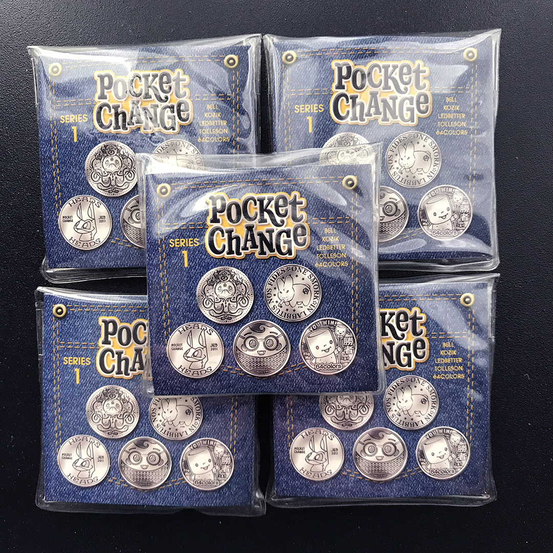 Full set of 5 Pocket Change coins as originally produced by October Toys in 2011